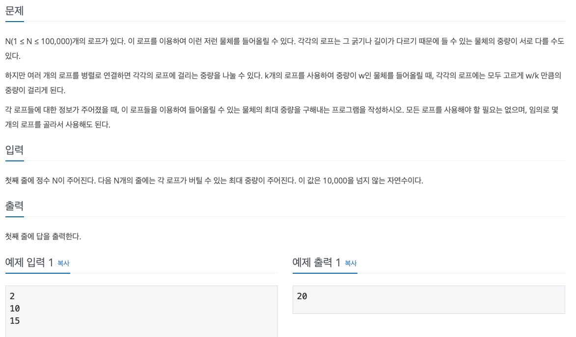 문제에 접근하기 앞서서 조건을 먼저 제대로 이해해야한다. 각 줄은 병렬로 배치될 수 있으며 모든 줄을 사용할 필요가 없었다. 즉, 정렬을 먼저 진행하면 이 후 모든 줄을 사용할 필요가 없다는 조건을 더욱 편하게 사용할 수 있다고 생각했다. 따라서 배열을 먼저 정렬한 뒤에 계산을 진행하는 방식을 선택했다.