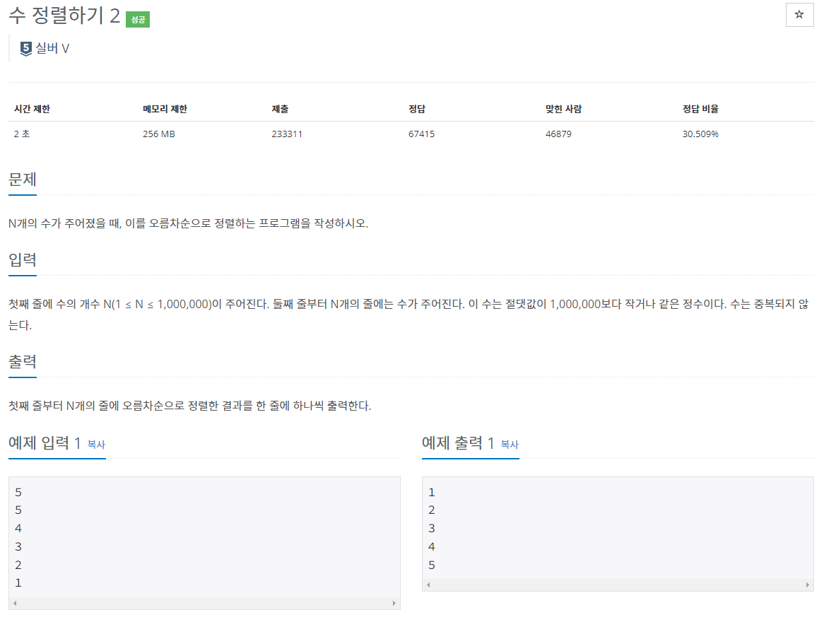 https://www.acmicpc.net/problem/2751