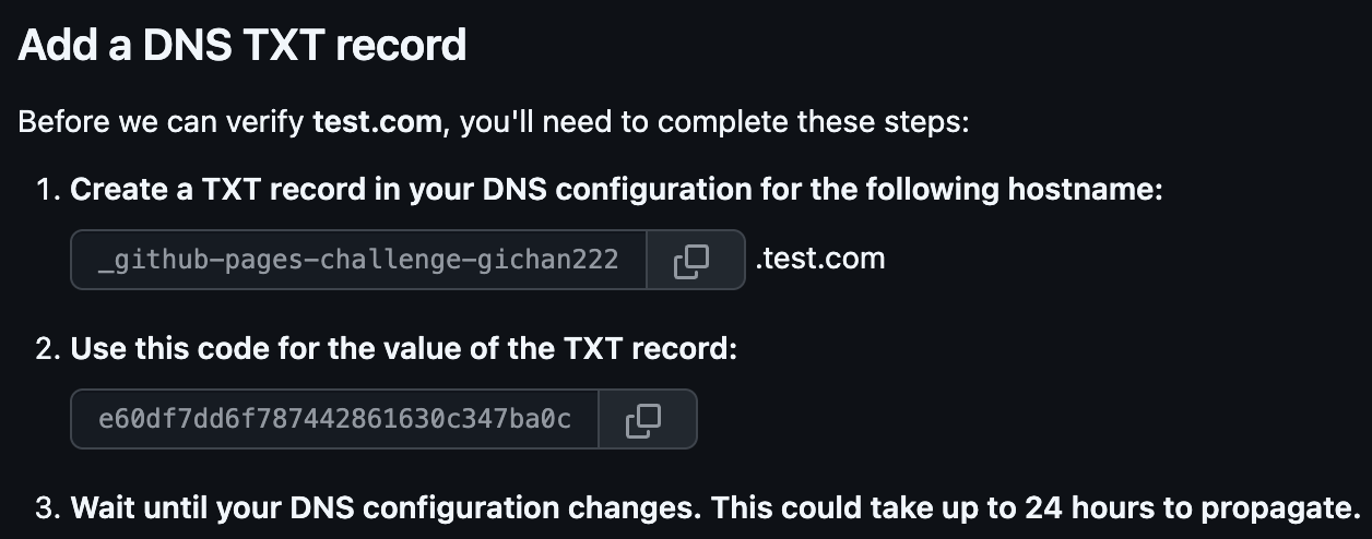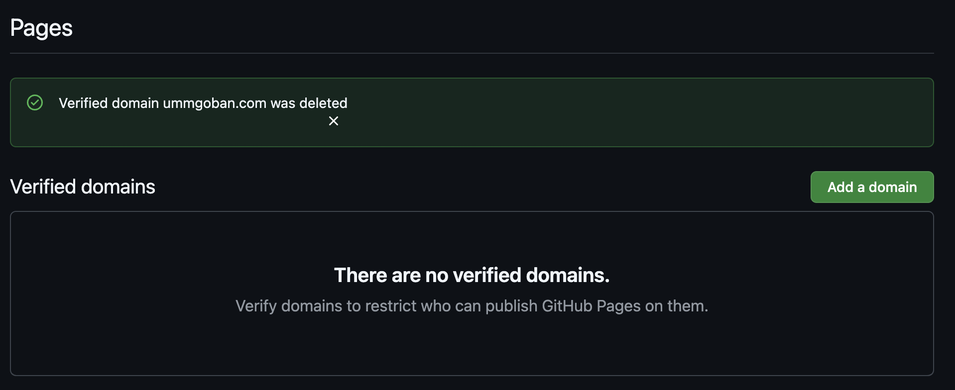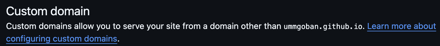 문제는 여기서 발생한 것이었다. Custom domain이라고 저장을 했는데…. 나만 이 도메인이 내 것이라는 걸 알지 깃헙은 알 방법이 없다.