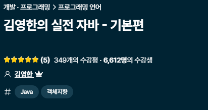 | 한 줄 평: 자바를 포함한 객체 지향 언어에 대한 기본기를 다지기에 최고인 강의 |