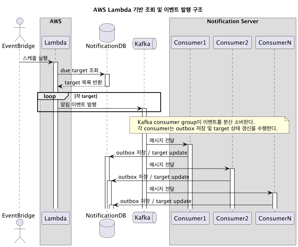 - AWS Lambda를 통해 스케줄러를 서비스와 분리하여 이벤트를 발행한다.